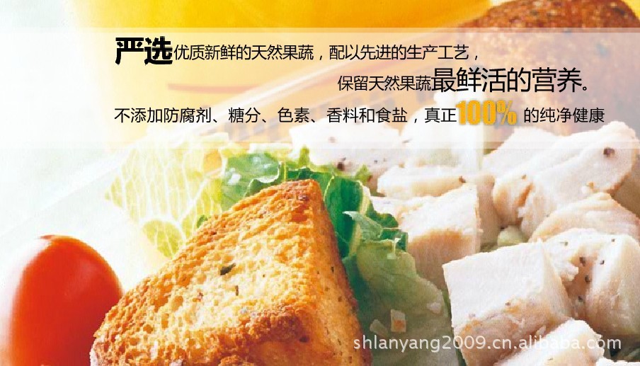 卖点:选用有“超级营养蔬菜”之称的上品南瓜,口感香甜,回味无穷!轻松补充胡萝卜素、VA、VC和矿物质等营养元素,让全家保持健康状态!上品南瓜配以【日本无芯品种】胡萝卜、菠菜、芦笋、羽甘蓝、西兰花等12种精选蔬菜和百香果、芒果等5种优质水果,均衡适量配比,富含全家所需的多种营养成份。