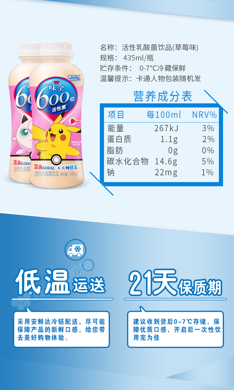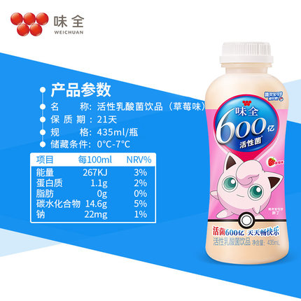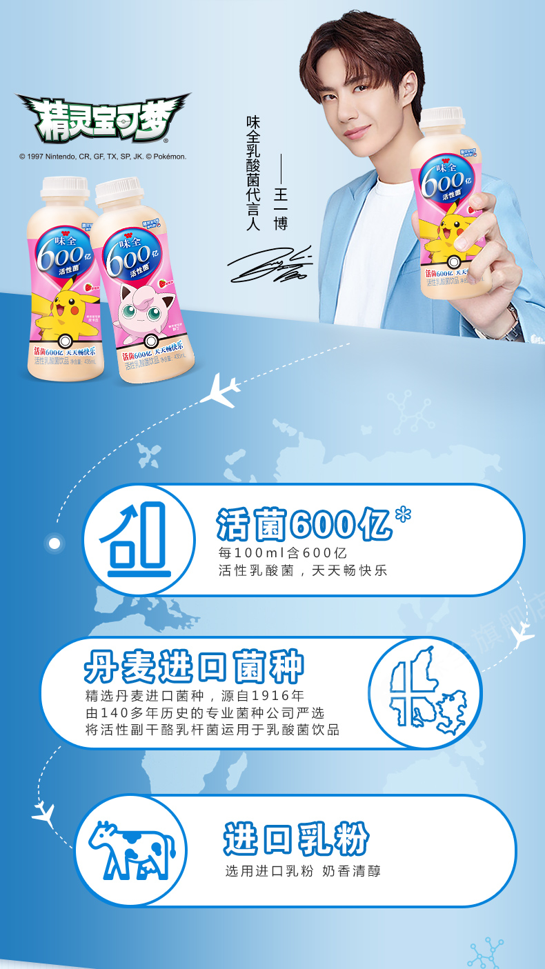 王一博精灵宝可梦款草莓乳酸菌饮料 乳制品435ml*6